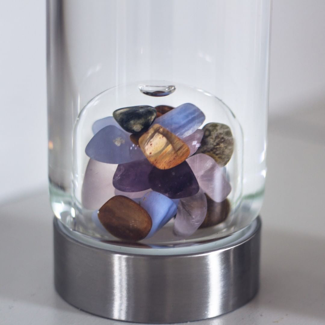 This blend of amethyst, chalcedony, petrified wood, rose quartz and ocean chalcedony each represents the five attributes and help support your overall well being.