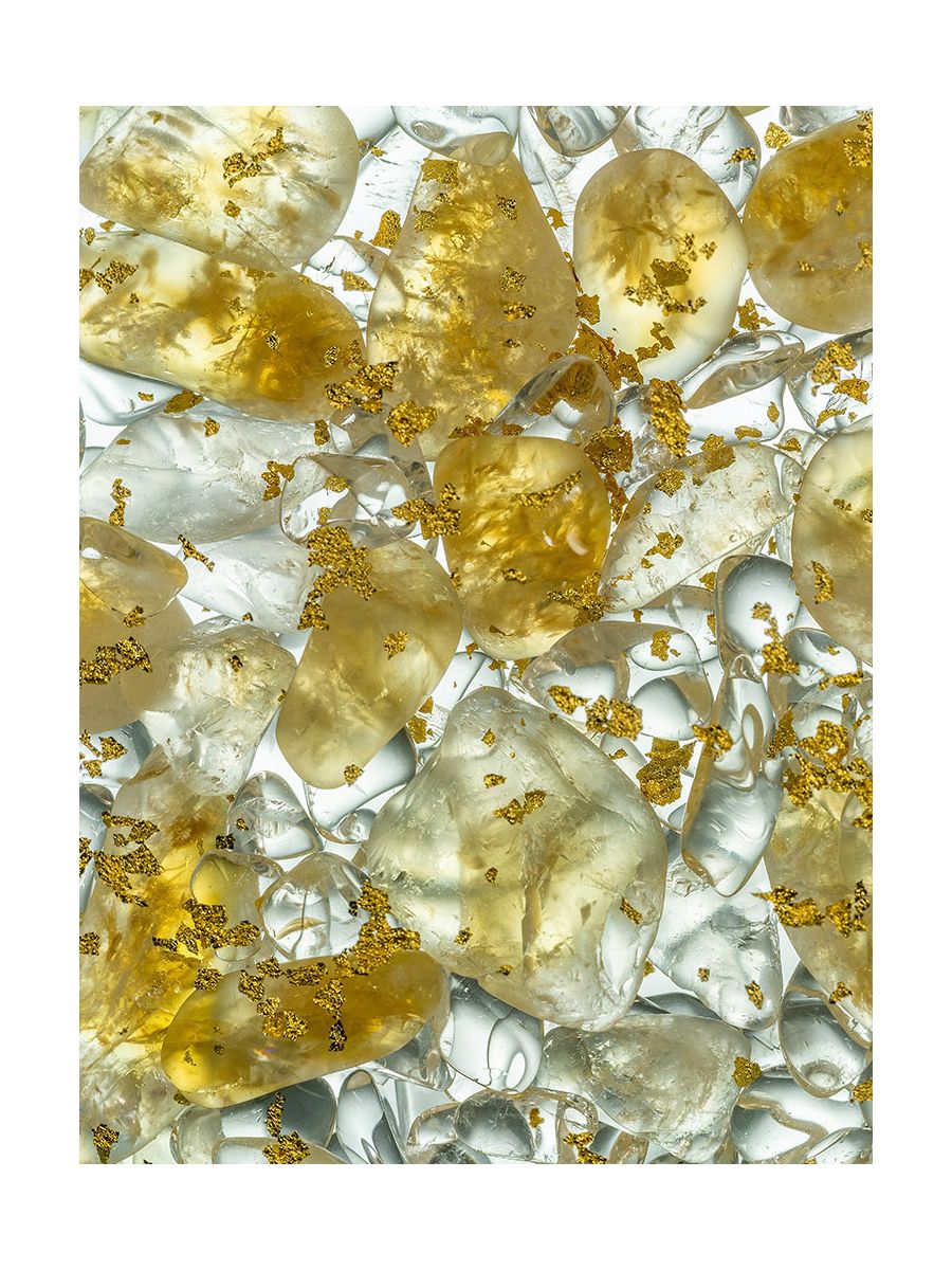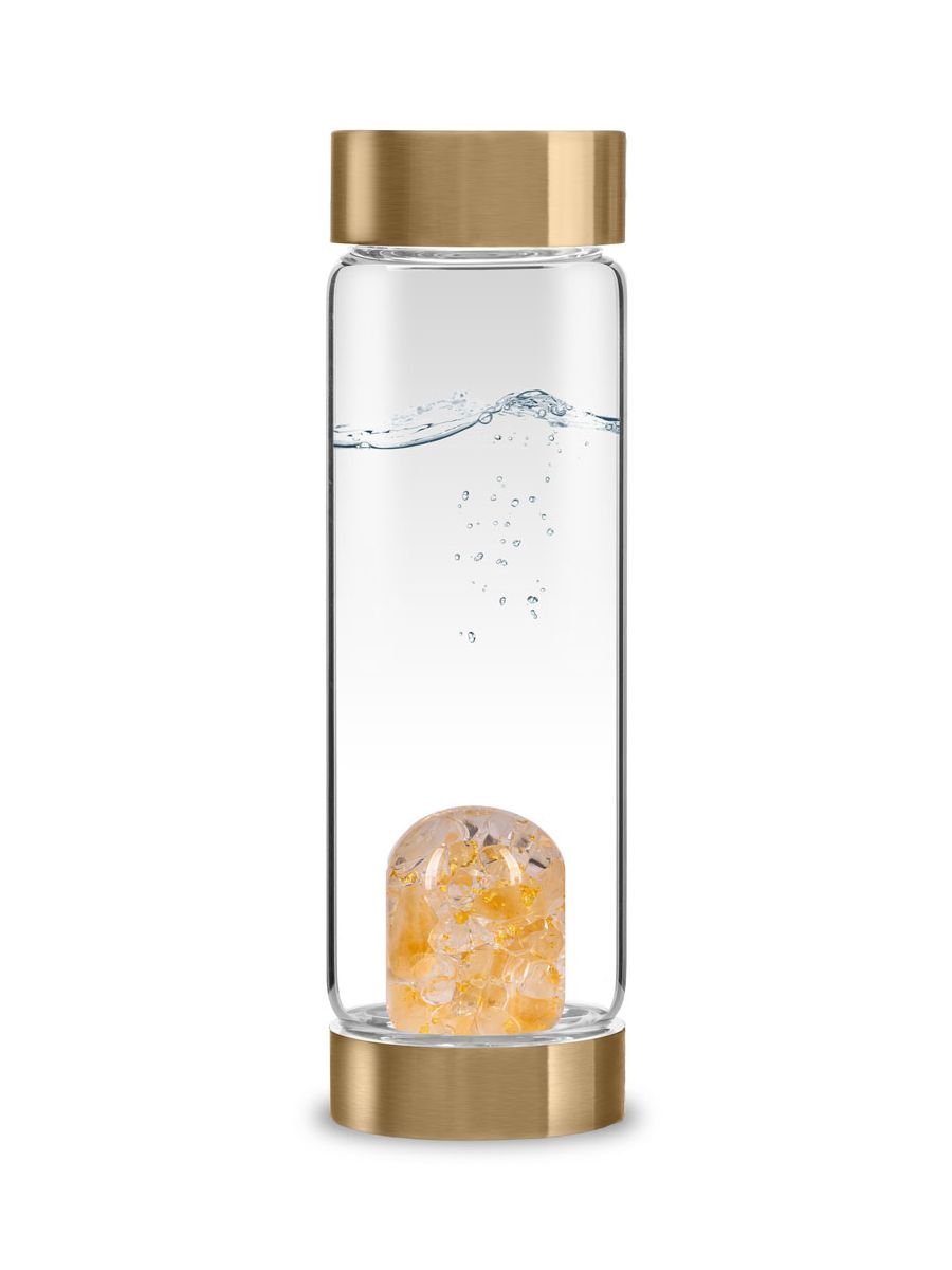 Unleash your inner star power with radiant Citrine, amplified Clear Quartz, and celestial 24k gold. Designed for free spirits, this bottle with gold-plated lids inspires limitless potential and positivity.